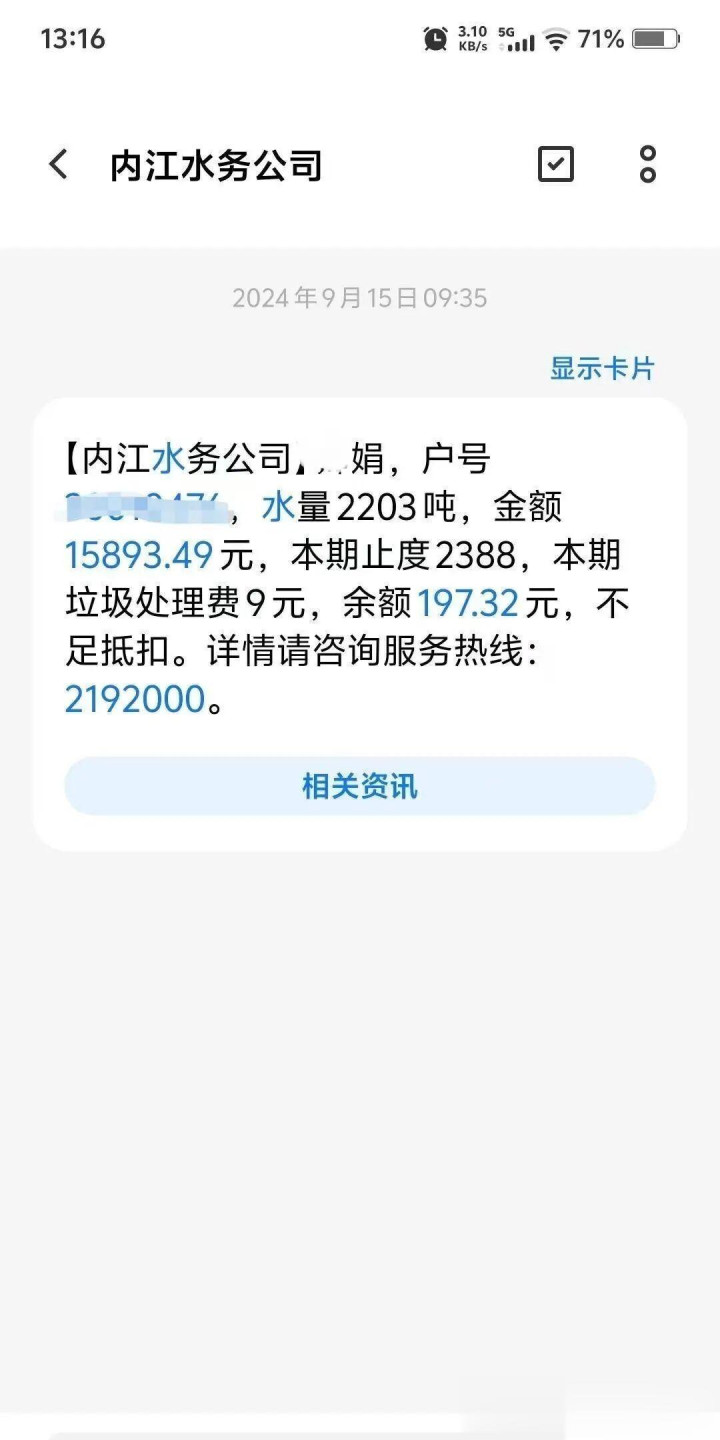 2024年9月的一天,李娟手机“叮”一声,短信跳出:两个月用水2203吨,水费15893.49元。她第一反应是运营商发错了。家里一直每月用个十来吨水,顶多几十块钱,怎么突然像被抽干了水库?她父亲李辉有尿毒症,靠腹膜透析维持,每天四次换液,用水也算仔细,从不浪费。可账单不会撒谎,抄表员已经上门,确认是表后管道漏水,水全顺着地下管流失了,没冒上路面,家里水压也没变化,根本没人察觉。